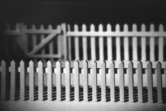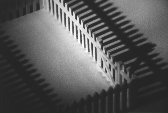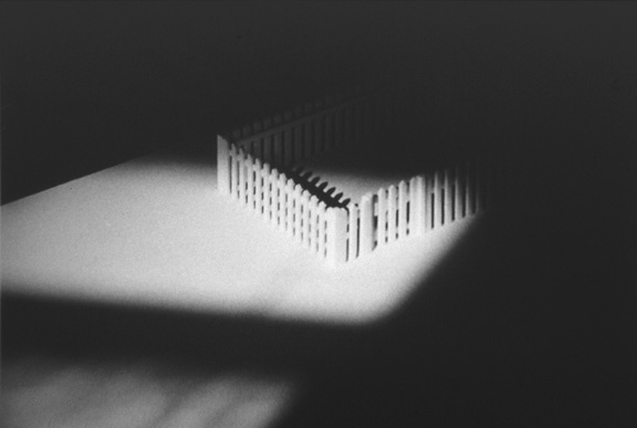 73 x 50cm ply board, 23 x 15cm polystyrene picket fence enclosure, both painted white. Selection from a series of 10 x 8" hand printed photographs that became works in their own right.