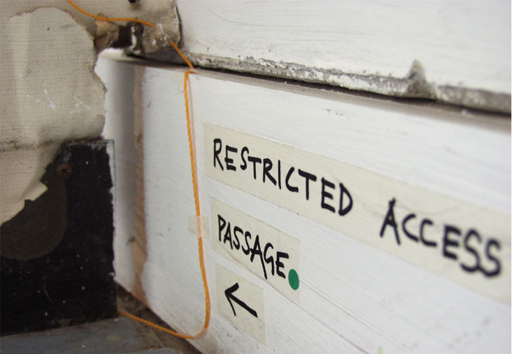 Ideas begin to gel a little under the self-imposed pressure of the finishing deadline. A journey through the gallery begins to take shape with a piece of string plotting the course over, under, around and through the gallery’s architectural topography, encountering some additional features en route.
